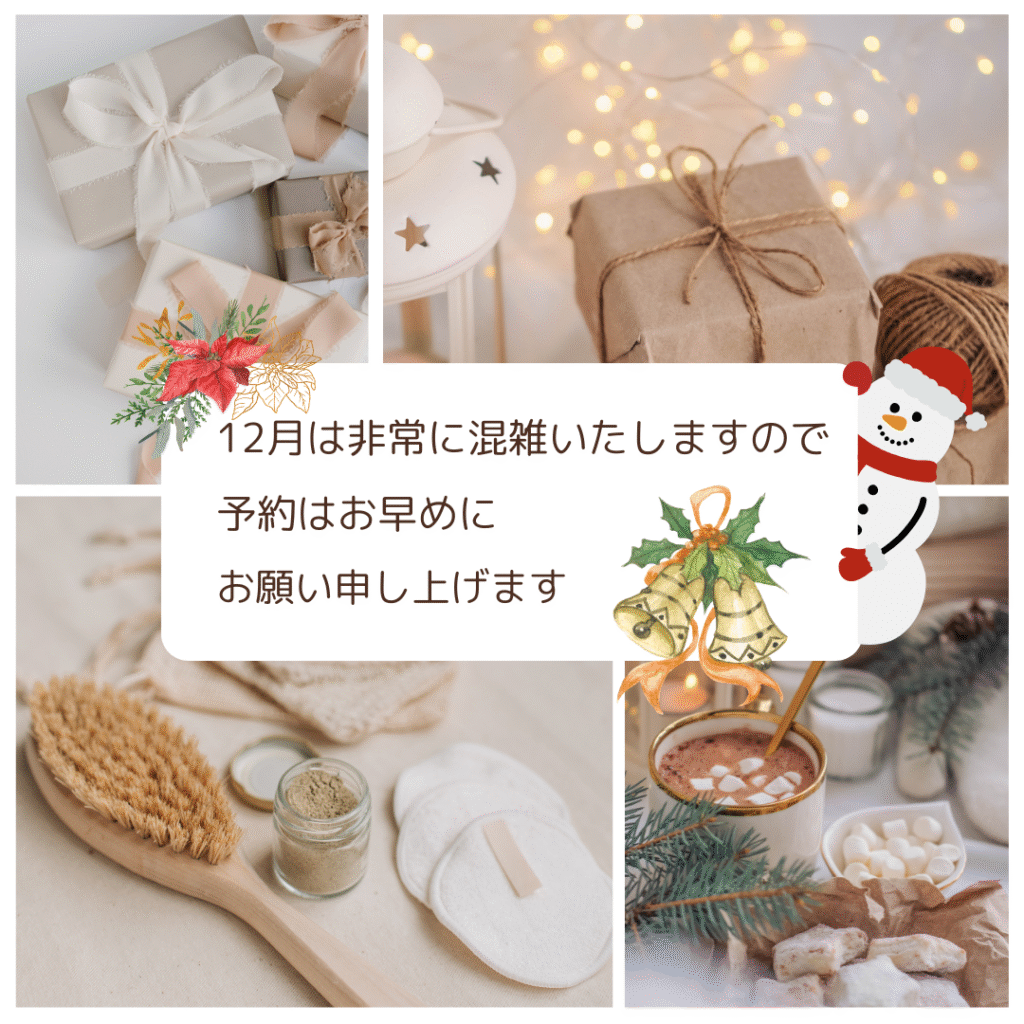 12月のご案内 投稿公開日:2025年12月7日 投稿カテゴリー:お知らせ 【ご案内】 12月は例年大変混雑いたしますので、予約はお早めにお願いいたします 年内の営業は12月30日17時までの予定となっております 今年1年、頑張った足を綺麗にして新年を迎えましょう♪ タグ: かかとケア, ドイツ式フットケア, フットエステ, フットケア, 保湿, 巻き爪, 蔵前, 角質, 角質ケア, 魚の目 その他の記事を読む 前の投稿おかげさまで5周年 おすすめ 年末のご挨拶 2023年12月28日 新年のご挨拶 2024年1月5日 年末のご挨拶 2024年12月28日